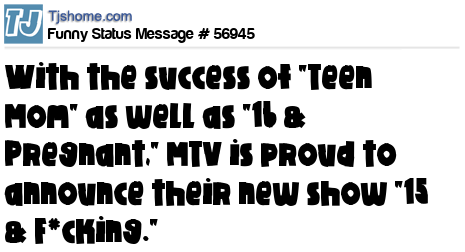 X With the success of "Teen Mom" as well as "16 & Pregnant," MTV is proud to announce their new show "15 & F*cking."