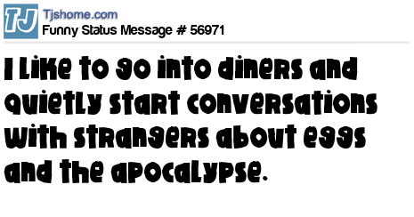 X I like to go into diners and quietly start conversations with strangers about eggs and the apocalypse.