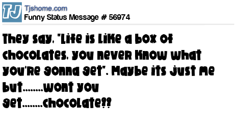 X says They say, "Life is like a box of chocolates, you never know what you're gonna get". Maybe its just me but........wont you get........chocolate??
