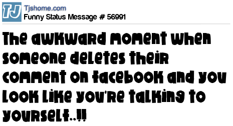 X says The awkward moment when someone deletes their comment on facebook and you look like you're talking to yourself..!!