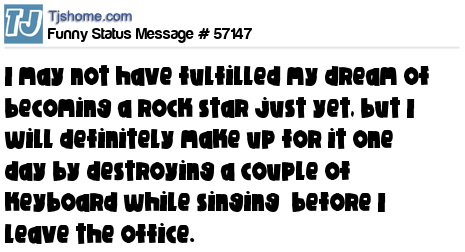 X says I may not have fulfilled my dream of becoming a rock star just yet, but I will definitely make up for it one day by destroying a couple of keyboard while singing before I leave the office.