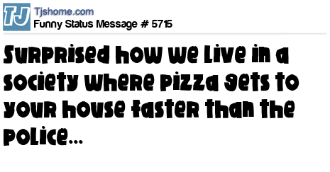X is surprised how we live in a society where pizza gets to your house faster than the police...