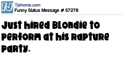 - # 57072 anyone interested in having a Rapture party this weekend?