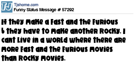 X If they make a Fast and the Furious 6 they have to make another Rocky, I cant live in a world where there are more Fast and the Furious movies than Rocky movies.