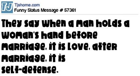 - # 178127 They say when a man holds a woman’s hand before marriage, it is love, after marriage, it is self-defense.