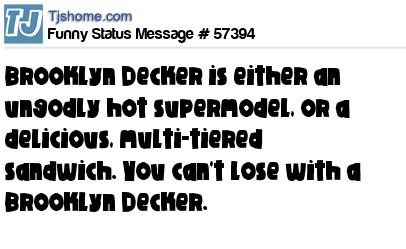 X Brooklyn Decker is either an ungodly hot supermodel, or a delicious, multi-tiered sandwich. You can't lose with a Brooklyn Decker.
