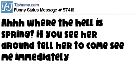 X is ahhh where the hell is spring? if you see her around tell her to come see me immediately