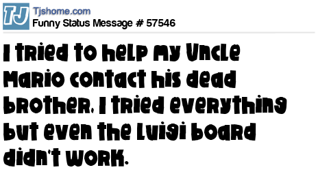 X is I tried to help my Uncle Mario contact his dead brother, I tried everything but even the Luigi board didn't work.