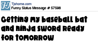X is getting my baseball bat and ninja sword ready for tomorrow