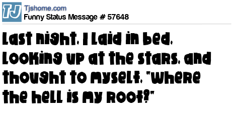 X is last night, I laid in bed, looking up at the stars, and thought to myself, "where the hell is my roof?"