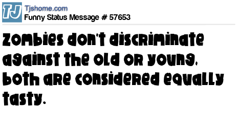 - # 46419 Tomorrow Facebook will change its settings to allow zombies to come into your house while you sleep & eat your brains with a sharpened spoon. To stop this from happening go to Accounts/Home Invasion Settings/Cannibalism/Brains & un-check the "Tasty" box.