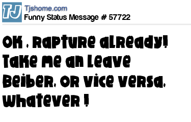 X is Ok , rapture already! Take me an leave Beiber, or vice versa, whatever !