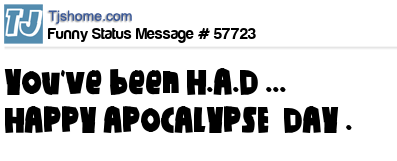 X is You've been H.A.D ... HAPPY APOCALYPSE DAY .