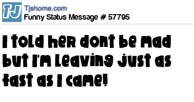 X is I told her dont be mad but I'm leaving just as fast as I came!