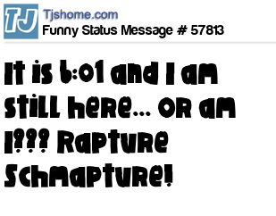 X is it is 6:01 and I am still here... or am I??? Rapture Schmapture!