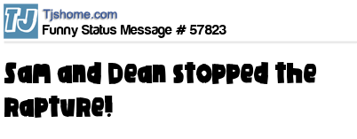 - # 57829 hmm still alive... either Sam and Dean stopped it, "Macho Man" called it off, or god is waiting on his crops in farmville...