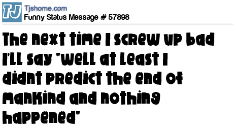 X is the next time I screw up bad I'll say "well at least I didnt predict the end of mankind and nothing happened"