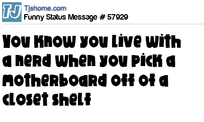 - # 57931 You know you live with a nerd when you pick a motherboard off of a closet shelf.