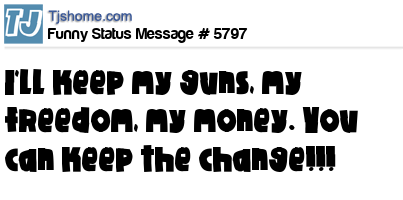 - # 67503 I'll keep my guns, my freedom & my money. You can keep the "change" !