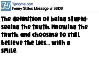 X The definition of being stupid: seeing the truth, knowing the truth, and choosing to still believe the lies... with a smile.