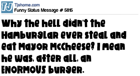 X is Why the hell didn't the Hamburglar ever steal and eat Mayor McCheese? I mean he was, after all, an ENORMOUS burger.