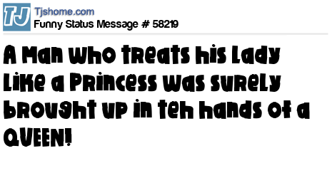 - # 82349 If a guy treats you like a princess, he was obviously raised by a queen. If he treats you like crap, well..he was raised by someone along the lines of michael vick.