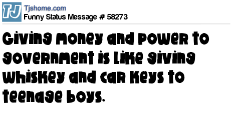 X is Giving money and power to government is like giving whiskey and car keys to teenage boys.