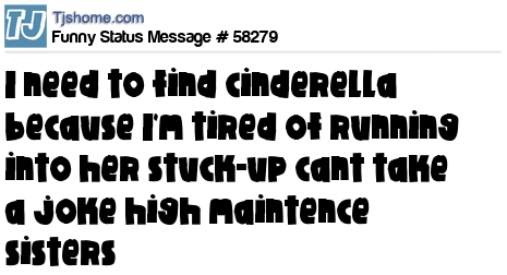 X is i need to find cinderella because I'm tired of running into her stuck-up cant take a joke high maintence sisters