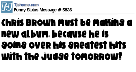 X is Chris Brown must be making a new album, because he is going over his greatest hits with the judge tomorrow?