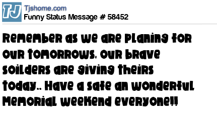 - # 192652 Remember as we are planing for our tomorrows, our brave soilders are giving theirs today.. Have a safe an wonderful Memorial Day weekend everyone!!
