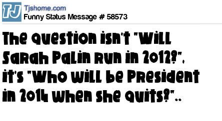 X The question isn't "Will Sarah Palin run in 2012?", it's "Who will be President in 2014 when she quits?"..