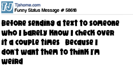 X says Before sending a text to someone who I barely know I check over it a couple times Because I don't want them to think I'm weird