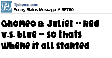 X says Gnomeo & Juliet -- red v.s. blue -- so thats where it all started