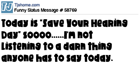 X Today is "Save Your Hearing Day" soooo......I'm not listening to a darn thing anyone has to say today.