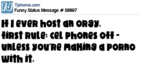 X If I ever host an orgy, first rule: cel phones off - unless you're making a porno with it.
