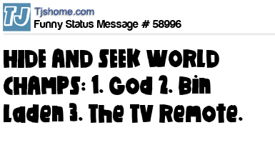 X is HIDE AND SEEK WORLD CHAMPS: 1. God 2. Bin Laden 3. The TV Remote.