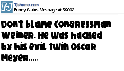 X Don't blame Congressman Weiner. He was hacked by his evil twin Oscar Meyer.....