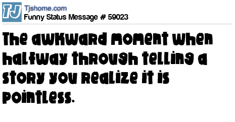 - # 47561 You've just gotta love that awkward moment when you start telling a story and you realize no one's listening, so you slowly fade out and pretend you never said anything.