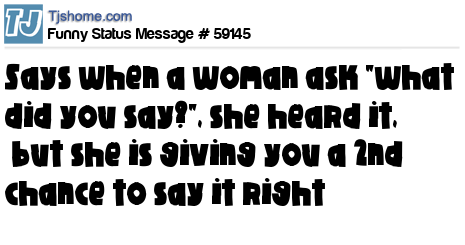 - # 58884 When a woman says “What?” It's not because didn't hear you, she's just giving you a chance to change what you said!