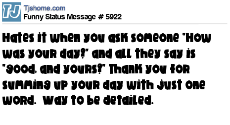 X hates it when you ask someone "How was your day?" and all they say is "good, and yours?" Thank you for summing up your day with just one word. Way to be detailed.