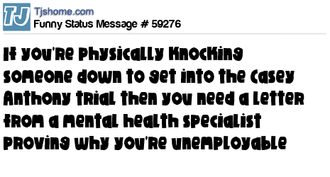 X If you're physically knocking someone down to get into the Casey Anthony trial then you need a letter from a mental health specialist proving why you're unemployable