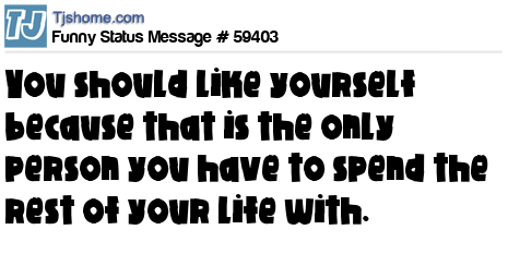 X is You should like yourself because that is the only person you have to spend the rest of your life with.