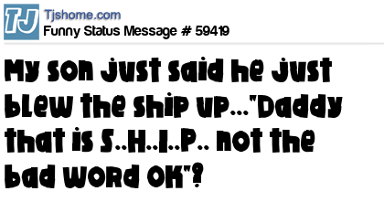 X my son just said he just blew the ship up..."Daddy that is S..H..I..P.. not the bad word Ok"?