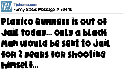 X says Plaxico Burress is out of jail today... Only a black man would be sent to jail for 2 years for shooting himself...