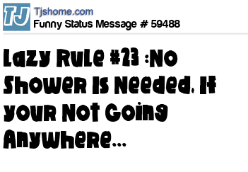 X Lazy Rule #23 :No Shower Is Needed, If your Not Going Anywhere...