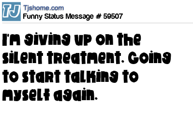 - # 96392 Wwhen my wife is angry wit me, instead of giving me the silent treatment..........she jus keeps talking!