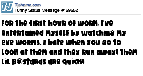 X is For the first hour of work, I've entertained myself by watching my eye worms. I hate when you go to look at them and they run away! Them lil B@stards are quick!