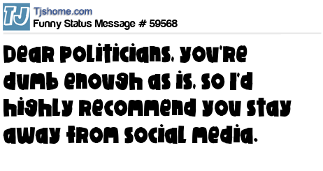X  Dear politicians, you're dumb enough as is, so I'd highly recommend you stay away from social media.