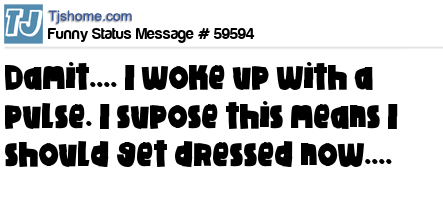 X is Damit.... I woke up with a pulse. I supose this means I should get dressed now....