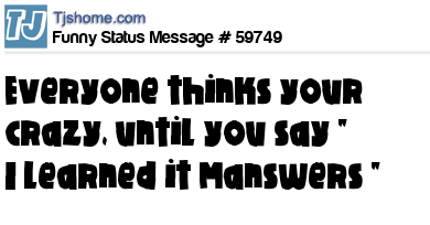 X is Everyone thinks your crazy, until you say " I learned it Manswers "